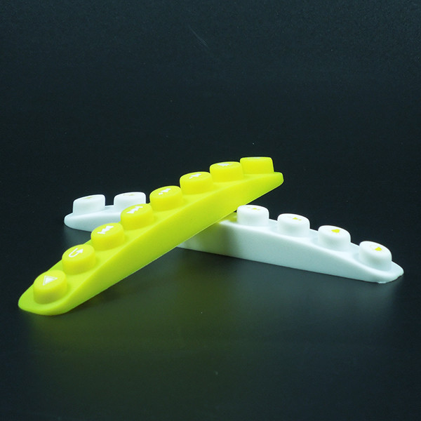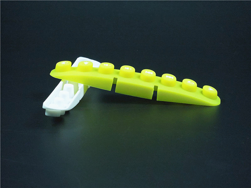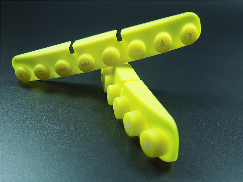 此款硅膠按鍵采用淡黃色色母調(diào)制,黃色色母加上半透明的硅膠原料配合硫化劑的添加是通過在里面加入對應(yīng)顏色比例的顏色色膏混煉,得到相應(yīng)需要的顏色,可自定義顏色定制加工生產(chǎn),原材料采用食品級環(huán)保硅膠、質(zhì)地柔軟,可塑性強。低碳環(huán)保,無毒無味,柔軟、防滑、防震、防滲水、隔熱、不易老化、不褪色、易清洗。